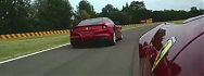 Fernando Alonso a Felipe Massa se prohánějí po okruhu Fiorano v nových Ferrari F12berlinetta.
